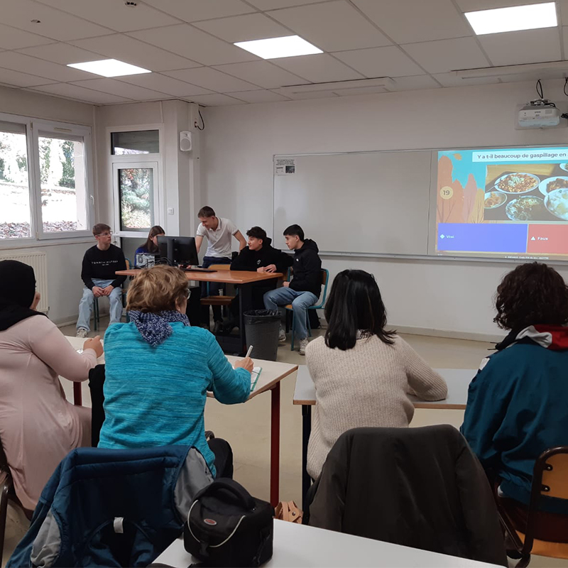 Les apprenants de première STAV ont préparé quatre ateliers interactifs pour sensibiliser les éco-délégués d'un collège local et les habitants à des thématiques essentielles telles que la saisonnalité des produits, l’agriculture biologique, le bien-être animal et la réduction du gaspillage alimentaire. Ces ateliers ont servi de préambule au défi culinaire qui verra les participants cuisiner des plats à moins de 5 € par personne tout en minimisant leur empreinte écologique.
