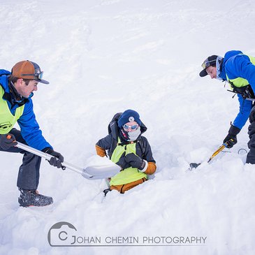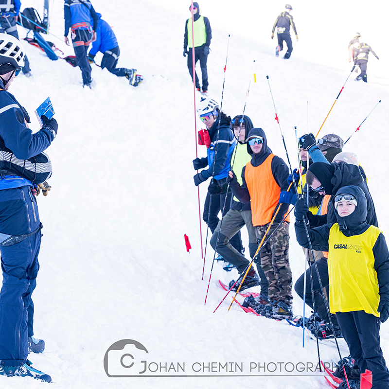 Pour cette immersion, les élèves ont été pleinement impliqués dans des scénarios réalistes de secours en avalanche. Ils ont notamment joué le rôle de pseudo-victimes, participant à des exercices de recherche avec chiens d’avalanche, de détection à l’aide de DVA, ainsi qu’à des vagues de sondage, le tout dans le strict respect des règles de sécurité.