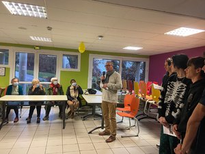 Accompagné de ses enseignantes de documentation et de français, un premier groupe est allé à la rencontre des résidentes et résidents.