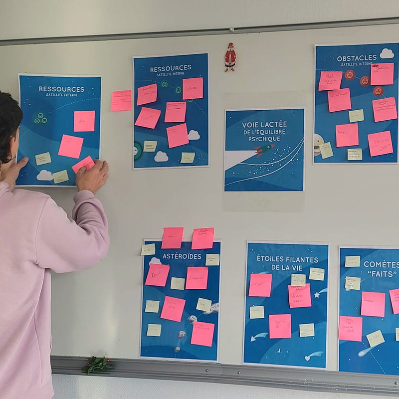 Avant même de plonger dans les ateliers et spectacles, les élèves bénéficient d’une sensibilisation essentielle grâce à la présentation du Cosmos Mental. Cet outil développé par Psycom, expert en santé mentale, vise à déstigmatiser cette thématique encore taboue. Il a été présenté par la CPE et l'infirmière de l’établissement, toutes deux formées à cet outil en mars 2025. Cette introduction permet d'offrir aux élèves une première réflexion sur la santé mentale, avant d’aborder de manière plus créative et concrète les diverses facettes de ce sujet à travers le théâtre et la danse.