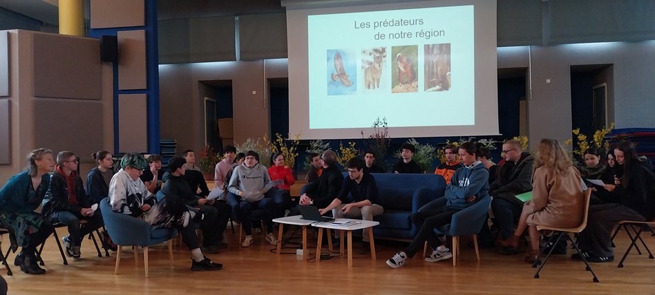 Les élèves de première GMNF ont travaillé cette année les principaux prédateurs de notre région : le lynx boréal, le loup, le gypaète barbu et l’aigle royal. Ils nous ont présenté les principales caractéristiques de ces animaux, mais aussi les enjeux de leur présence vis-à-vis de l’élevage.