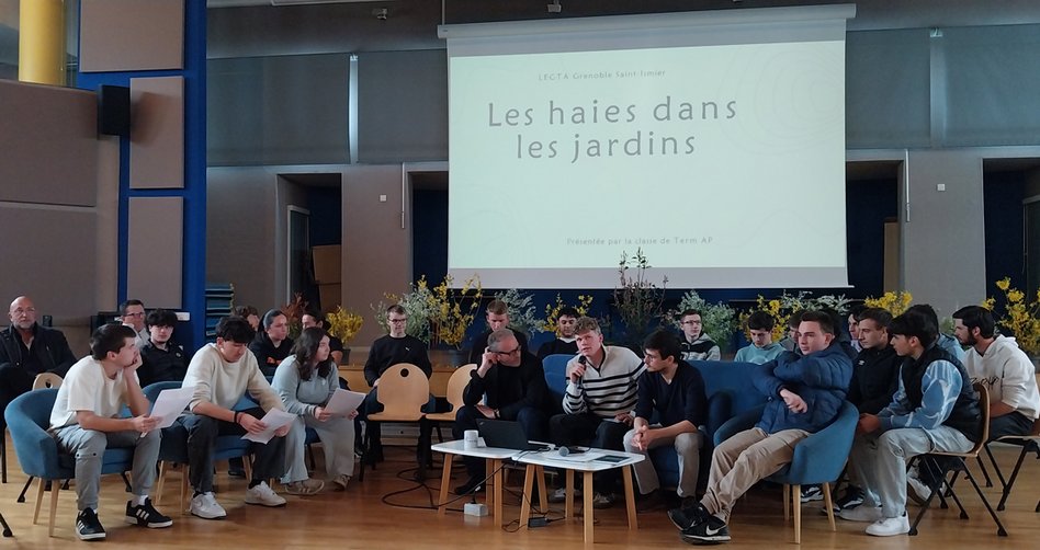 À partir de situations vécues en stage, les étudiants en BTSA Aménagements paysagers 2e année ont réfléchi aux principaux enjeux du métier de paysagiste. Ils ont mis en évidence la question de la préservation de la biodiversité, l’adaptation au changement climatique, la revalorisation des déchets (compostage, etc.) ou encore la création d’espaces de vivre ensemble.