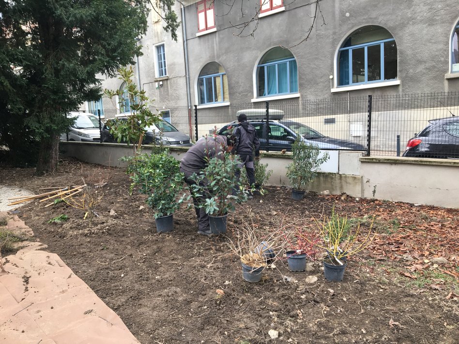 La deuxième phase a porté sur le travail des sols carrossables, ainsi que sur la réalisation d’un escalier en forme d’amphithéâtre, permettant un accès facile à la partie engazonnée. Enfin, la dernière étape se consacrera à l’installation de potagers hors sol, à la plantation de végétaux divers et à la pose de mobilier urbain, favorisant ainsi la convivialité et l’interaction sociale.